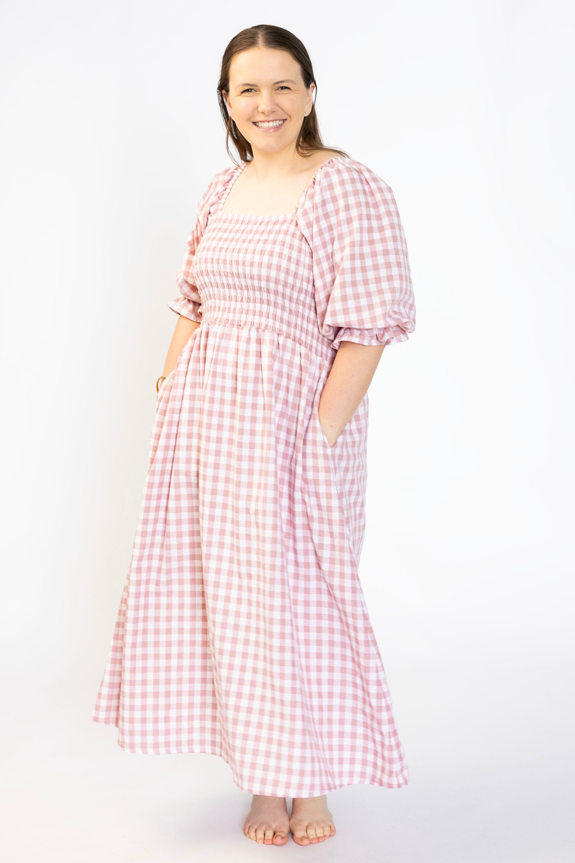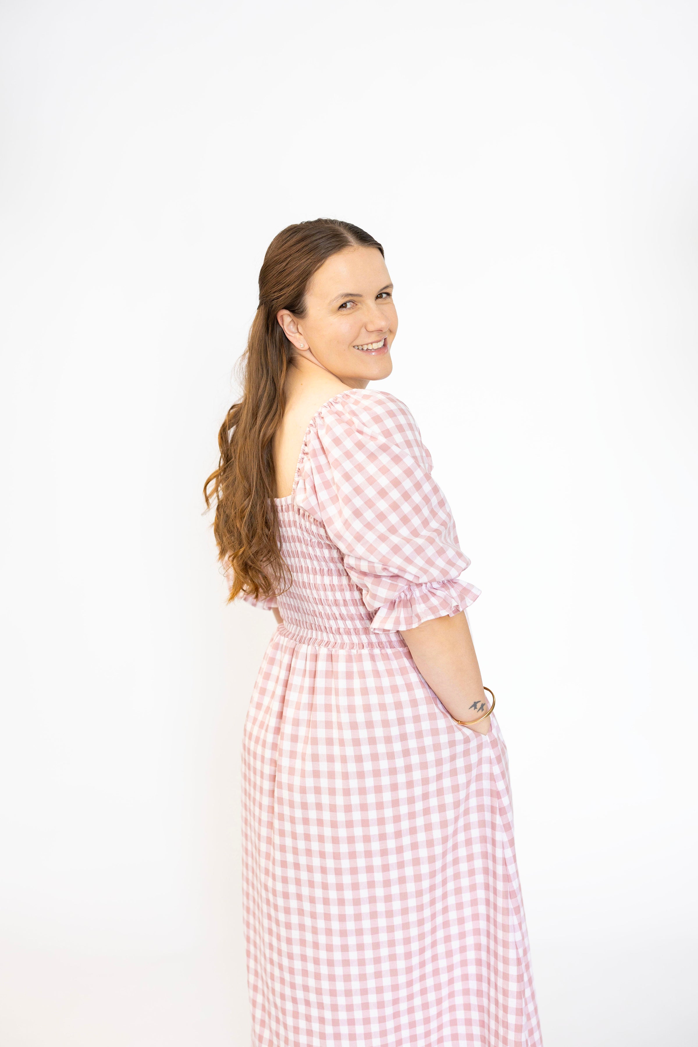 This design is designed with a VERY stretchy bust and waist line. Please keep this in mind. In most cases we recommend sticking to your regular dress size, or if you're in between sizes and have a smaller bust you could size down. Our dresses are all measured relaxed and laying flat, at no pull, then doubled.